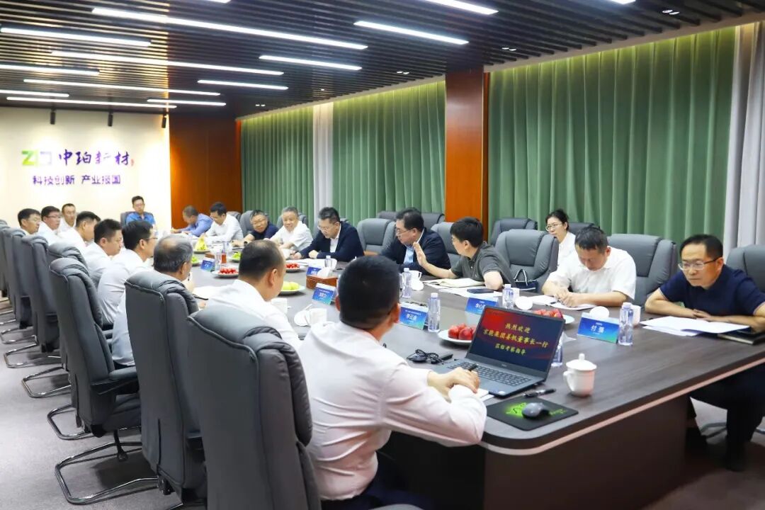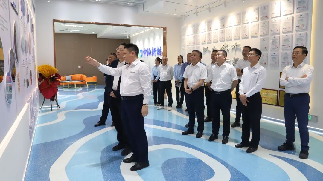 5月16日,京能集團董事長姜帆一行蒞臨中珀新材總部及研發中心調研交流,集團副總經理陳國高及相關部室負責人參加。中珀新材董事長鄧強攜總經理于杰及各事業部總經理全程陪同。